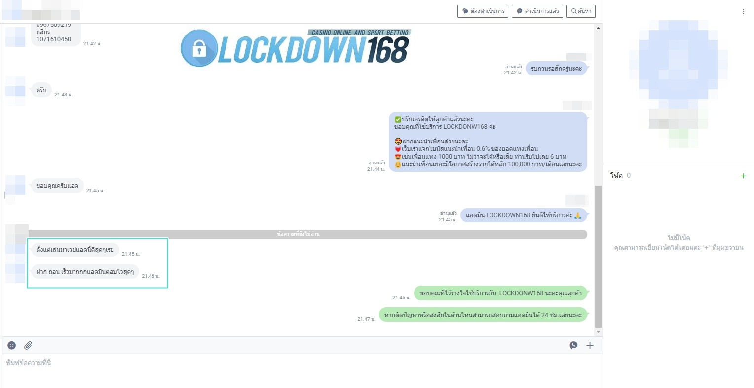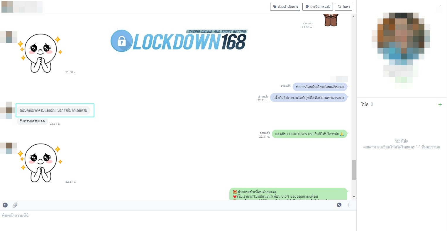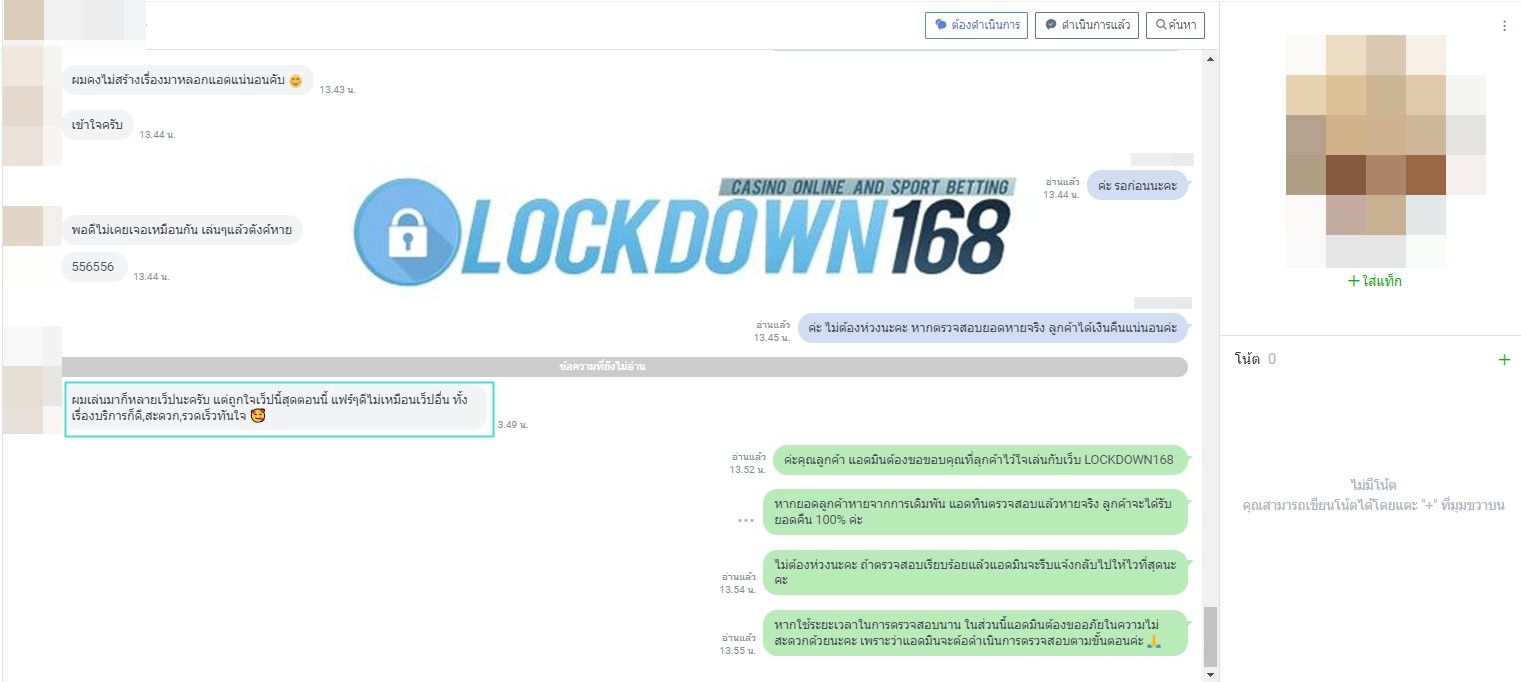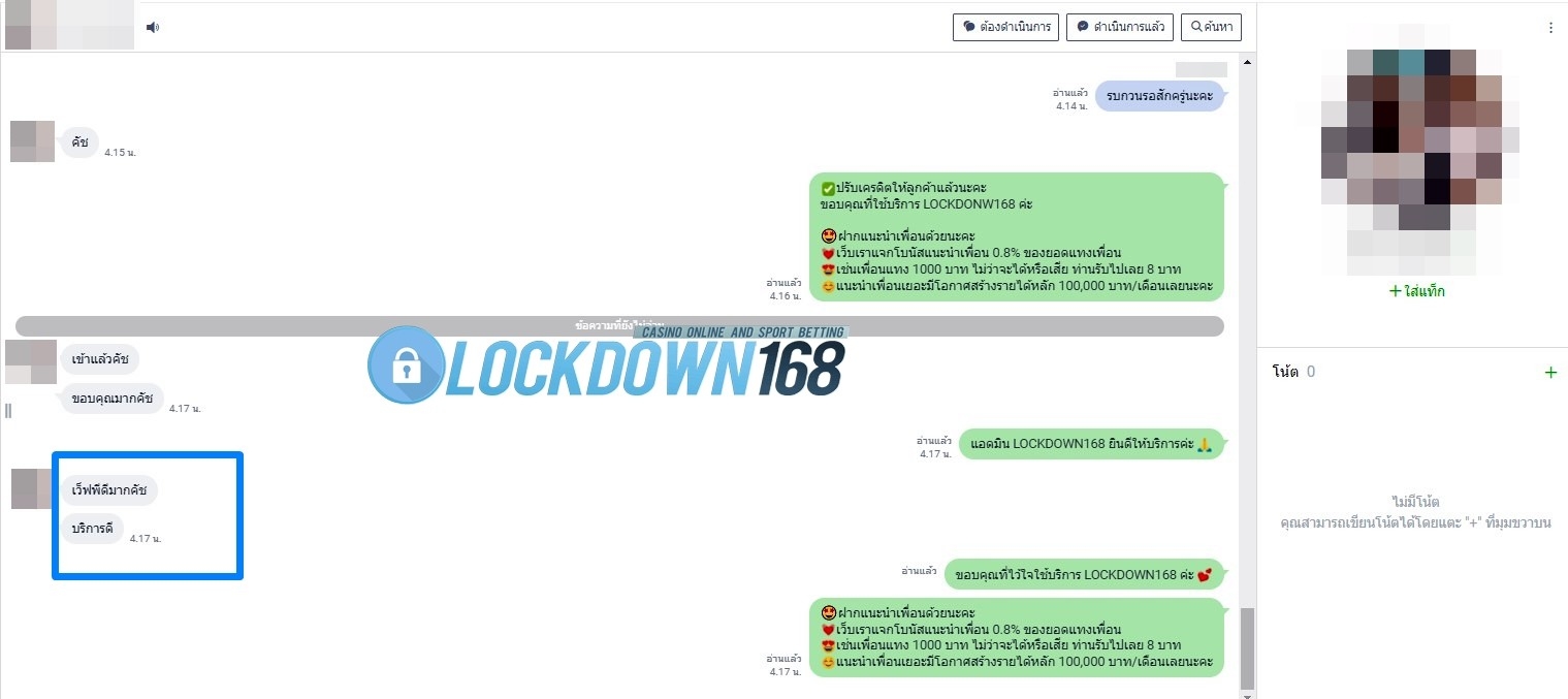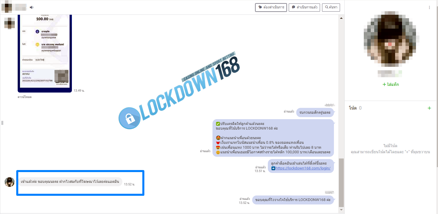 LOCKDOWN168.COM คาสิโนออนไลน์น้องใหม่ที่มาแรงที่สุดในตอนนี้ ด้วยระบบฝาก-ถอนอัตโนมัติ ที่ใช้เทคโนโลยีการจับยอดแบบใหม่ จับยอดฝากได้ภายใน 10 วินาที สามารถเล่นได้ทันทีหลังทำการโอนเงิน และระบบถอนเงินที่สามารถถอนเงินที่หน้าเว็ปได้ด้วยตัวท่านเอง โดยไม่ต้องแจ้งแอดมินและยอดเงินจะเข้าหลังจากทำการถอนภายใน 5 นาที เว็ปของเราคำนึงถึงความสะดวกสบายของลูกค้าเป็นหลัก หากลูกค้าพบปัญหาใดๆก็จะมีเจ้าหน้าที่แอดมินค่อยดูแลอำนวยความสะดวกให้คุณลูกค้าตลอด 24 ชั่วโมง