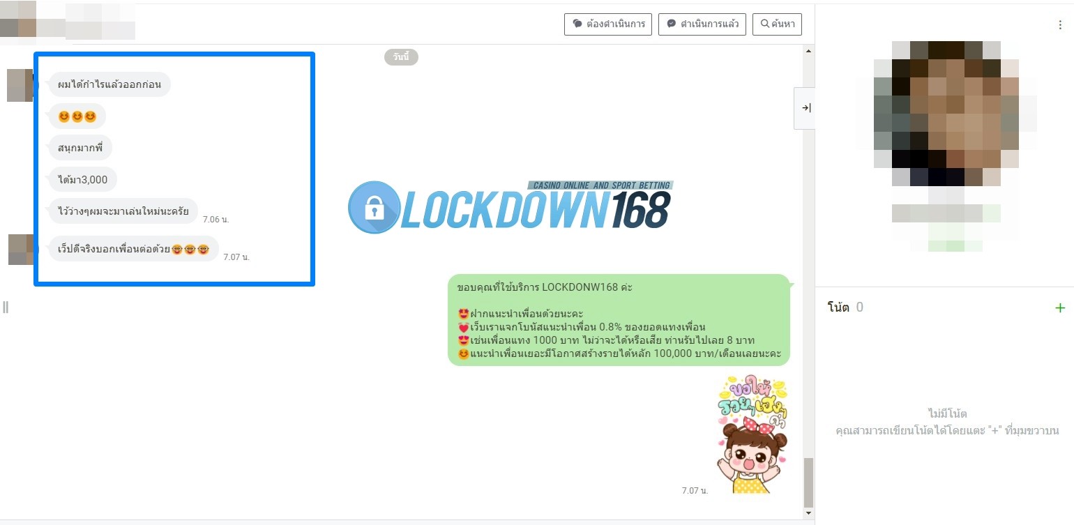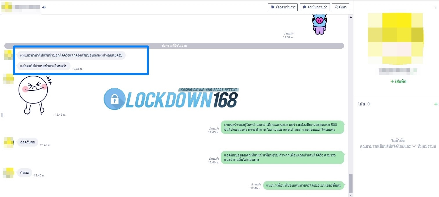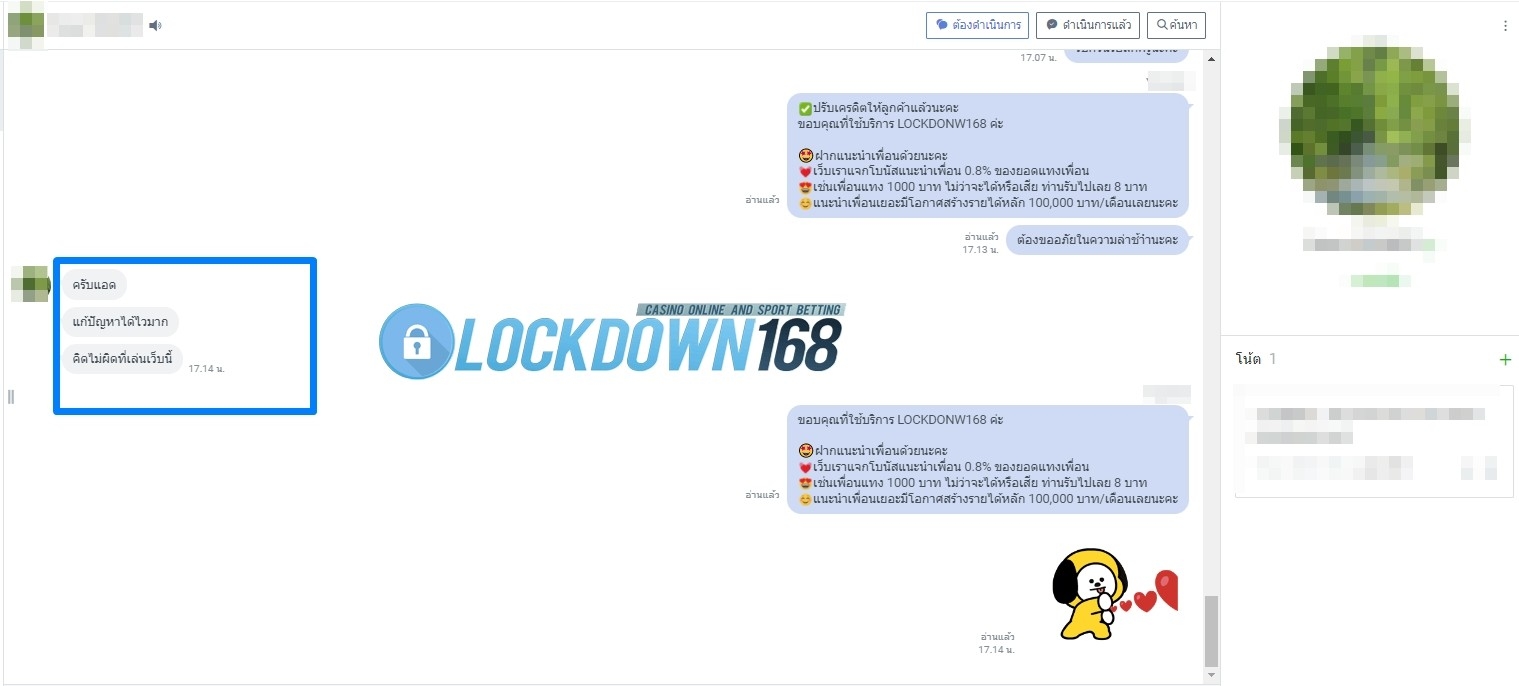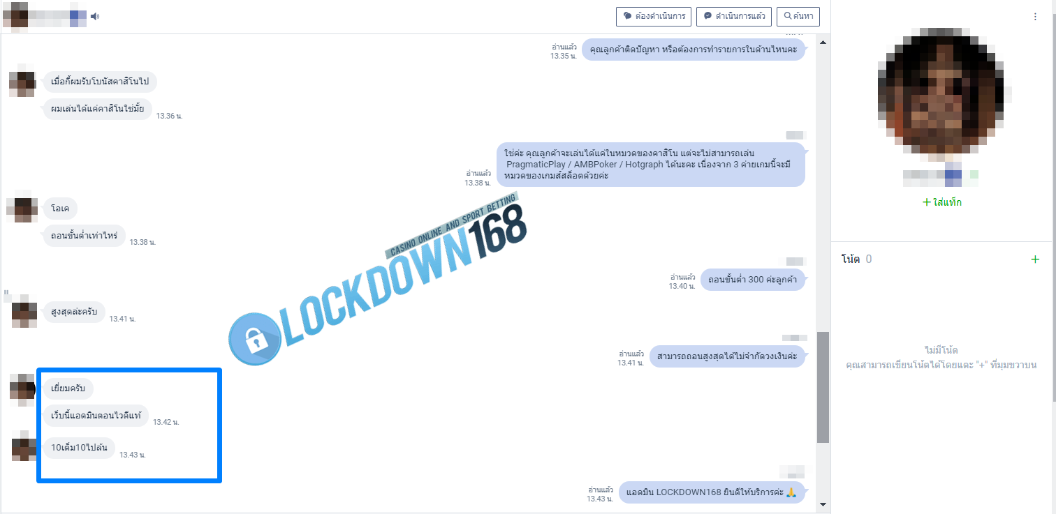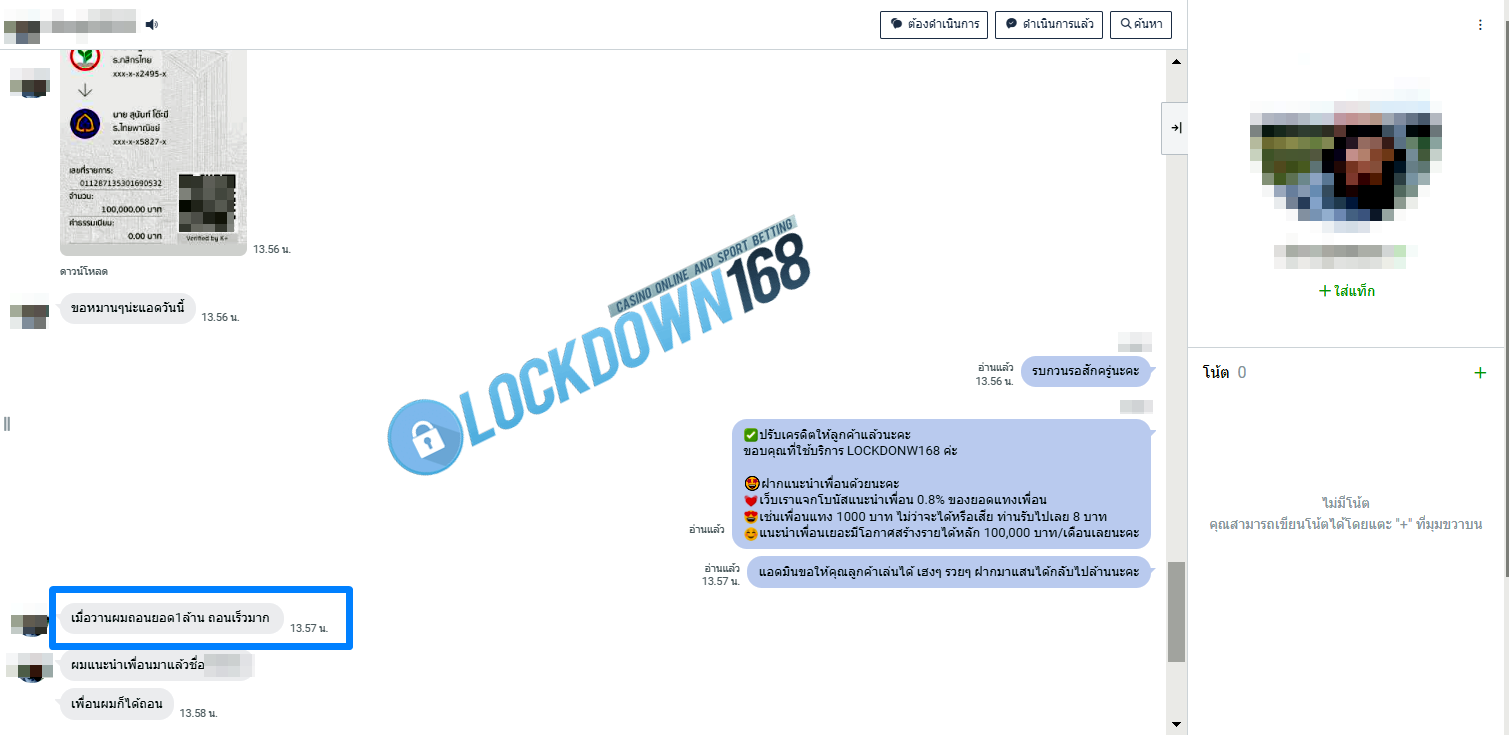 LOCKDOWN168.COM คาสิโนออนไลน์น้องใหม่ที่มาแรงที่สุดในตอนนี้ ด้วยระบบฝาก-ถอนอัตโนมัติ ที่ใช้เทคโนโลยีการจับยอดแบบใหม่ จับยอดฝากได้ภายใน 10 วินาที สามารถเล่นได้ทันทีหลังทำการโอนเงิน และระบบถอนเงินที่สามารถถอนเงินที่หน้าเว็ปได้ด้วยตัวท่านเอง โดยไม่ต้องแจ้งแอดมินและยอดเงินจะเข้าหลังจากทำการถอนภายใน 5 นาที เว็ปของเราคำนึงถึงความสะดวกสบายของลูกค้าเป็นหลัก หากลูกค้าพบปัญหาใดๆก็จะมีเจ้าหน้าที่แอดมินค่อยดูแลอำนวยความสะดวกให้คุณลูกค้าตลอด 24 ชั่วโมง