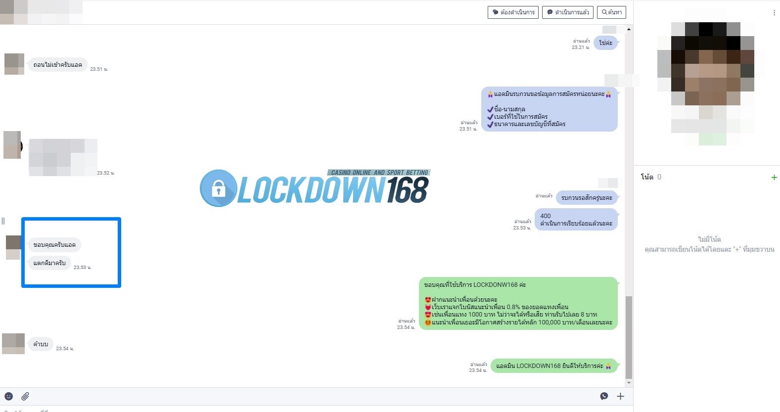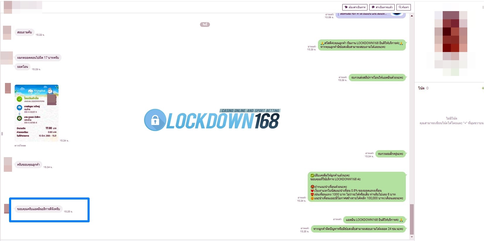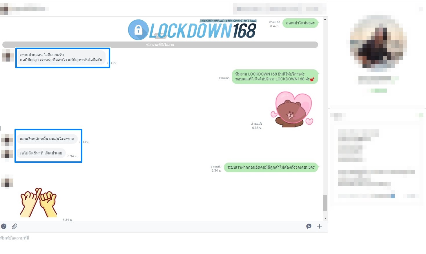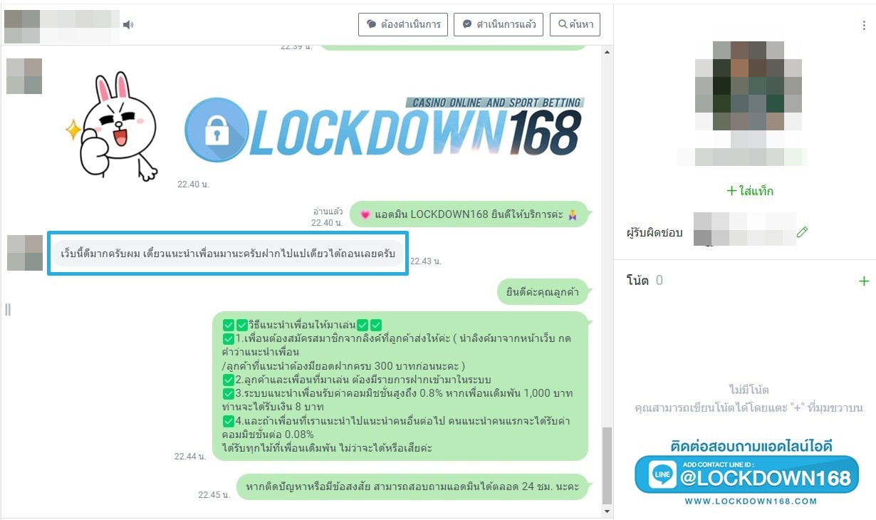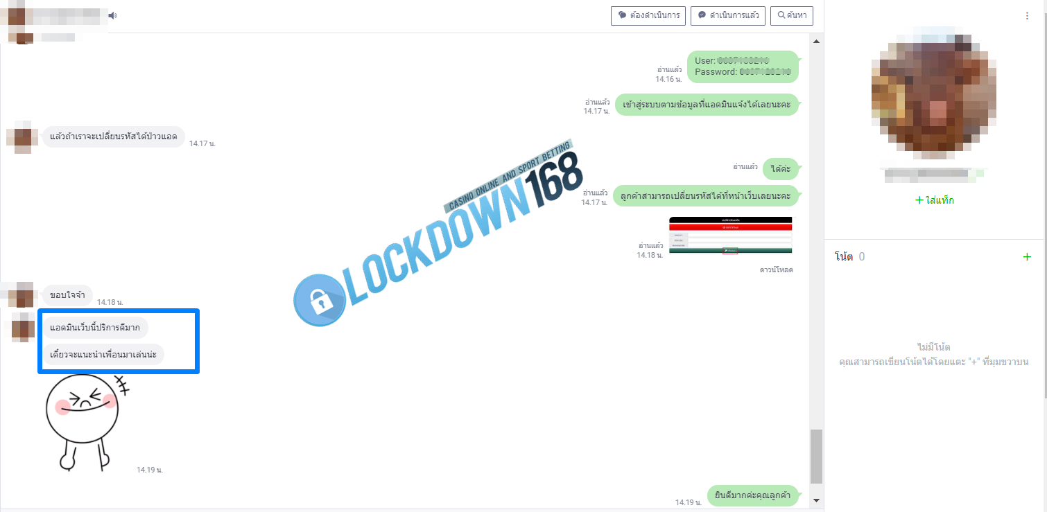 LOCKDOWN168.COM คาสิโนออนไลน์น้องใหม่ที่มาแรงที่สุดในตอนนี้ ด้วยระบบฝาก-ถอนอัตโนมัติ ที่ใช้เทคโนโลยีการจับยอดแบบใหม่ จับยอดฝากได้ภายใน 10 วินาที สามารถเล่นได้ทันทีหลังทำการโอนเงิน และระบบถอนเงินที่สามารถถอนเงินที่หน้าเว็ปได้ด้วยตัวท่านเอง โดยไม่ต้องแจ้งแอดมินและยอดเงินจะเข้าหลังจากทำการถอนภายใน 5 นาที เว็ปของเราคำนึงถึงความสะดวกสบายของลูกค้าเป็นหลัก หากลูกค้าพบปัญหาใดๆก็จะมีเจ้าหน้าที่แอดมินค่อยดูแลอำนวยความสะดวกให้คุณลูกค้าตลอด 24 ชั่วโมง