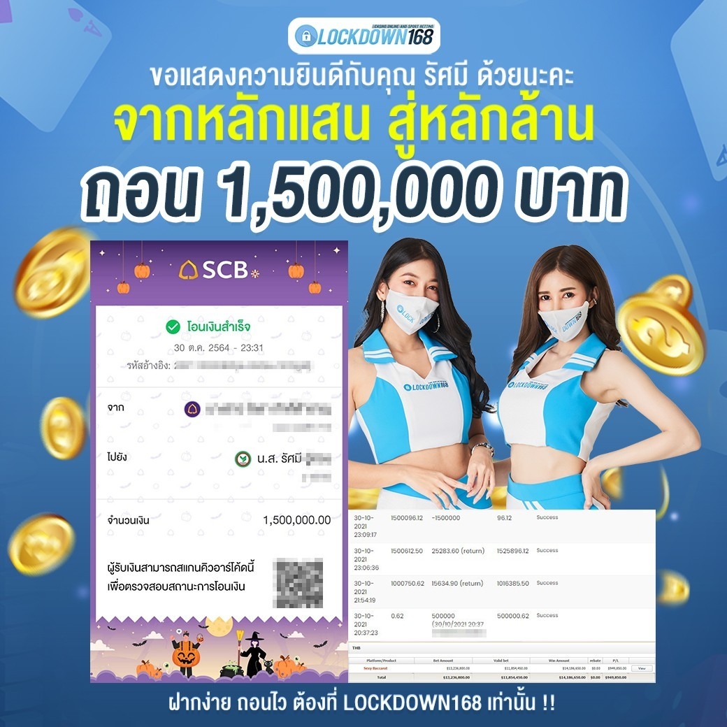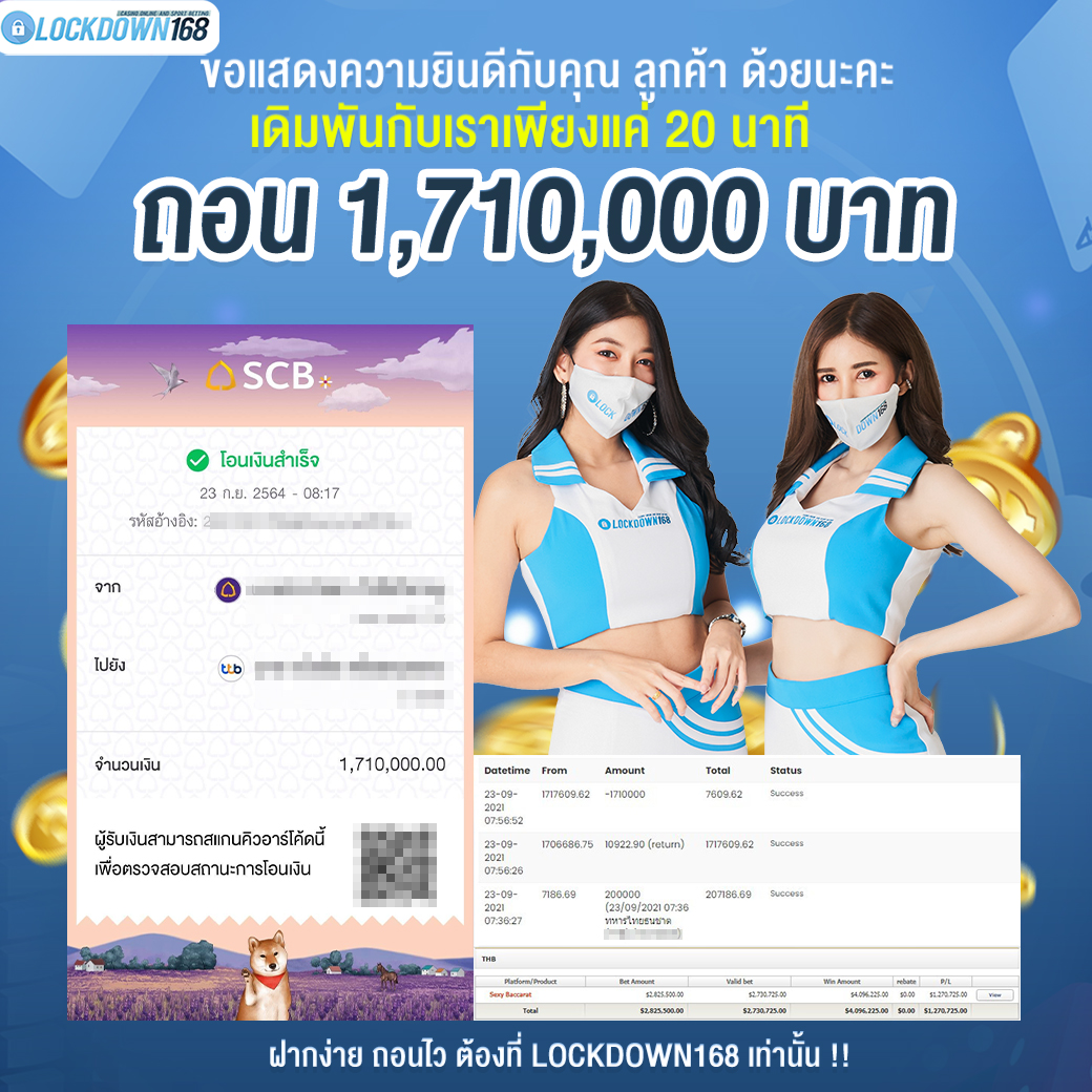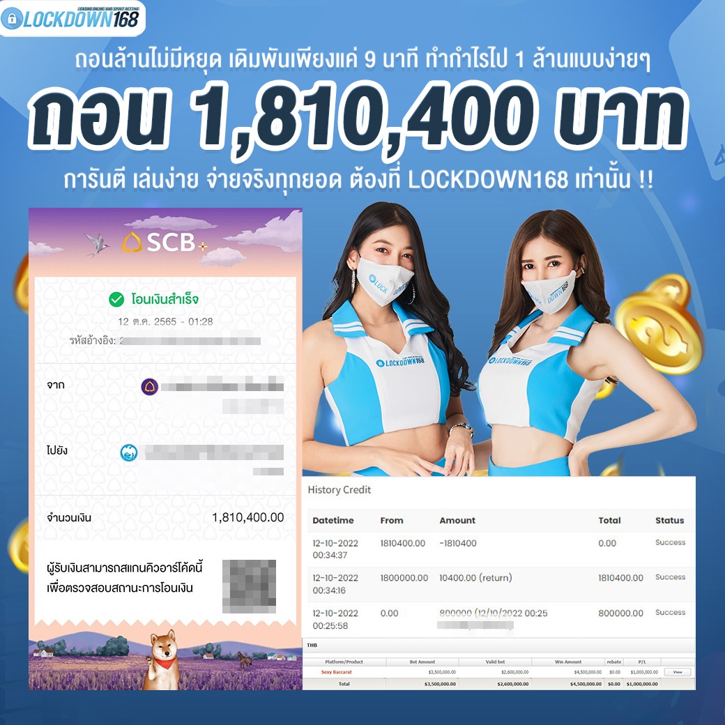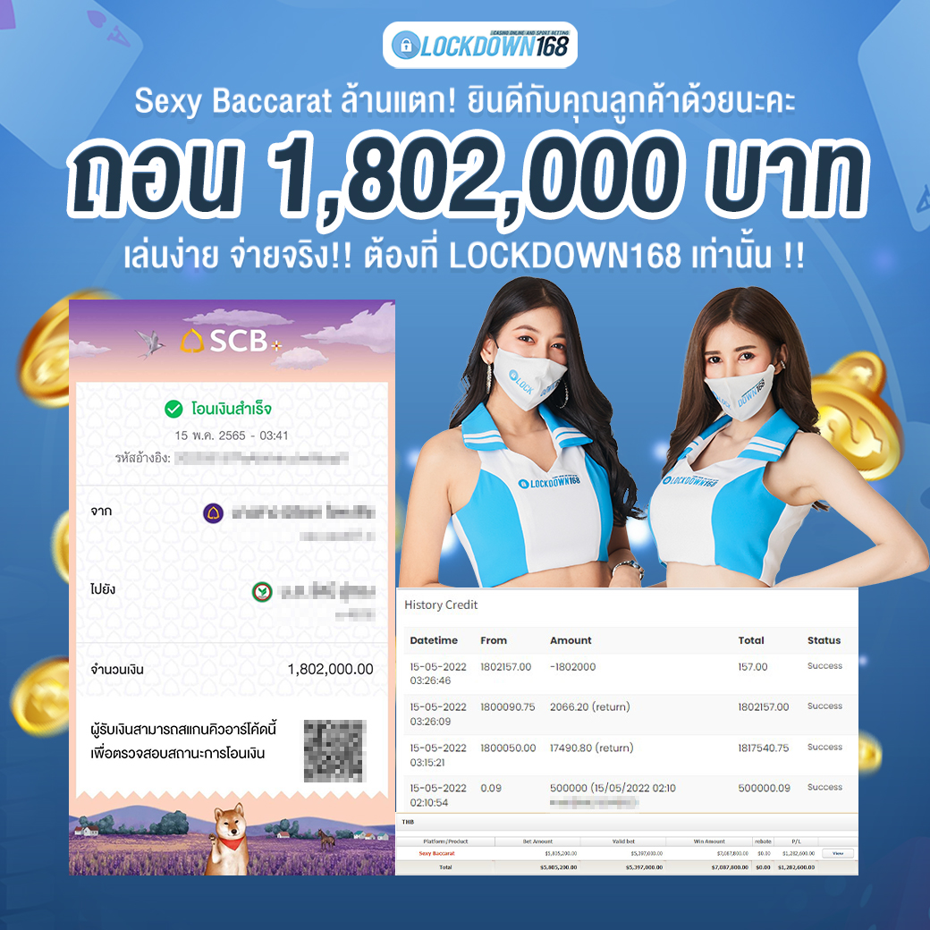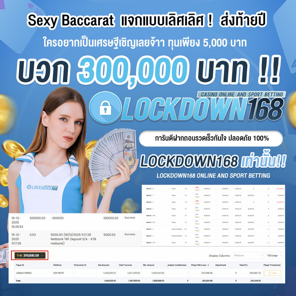 LOCKDOWN168.COM คาสิโนออนไลน์น้องใหม่ที่มาแรงที่สุดในตอนนี้ ด้วยระบบฝาก-ถอนอัตโนมัติ ที่ใช้เทคโนโลยีการจับยอดแบบใหม่ จับยอดฝากได้ภายใน 10 วินาที สามารถเล่นได้ทันทีหลังทำการโอนเงิน และระบบถอนเงินที่สามารถถอนเงินที่หน้าเว็ปได้ด้วยตัวท่านเอง โดยไม่ต้องแจ้งแอดมินและยอดเงินจะเข้าหลังจากทำการถอนภายใน 5 นาที เว็ปของเราคำนึงถึงความสะดวกสบายของลูกค้าเป็นหลัก หากลูกค้าพบปัญหาใดๆก็จะมีเจ้าหน้าที่แอดมินค่อยดูแลอำนวยความสะดวกให้คุณลูกค้าตลอด 24 ชั่วโมง