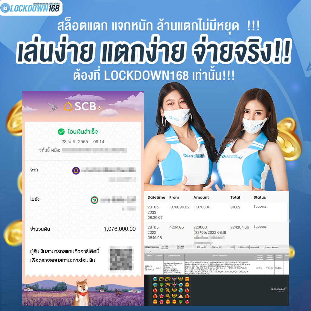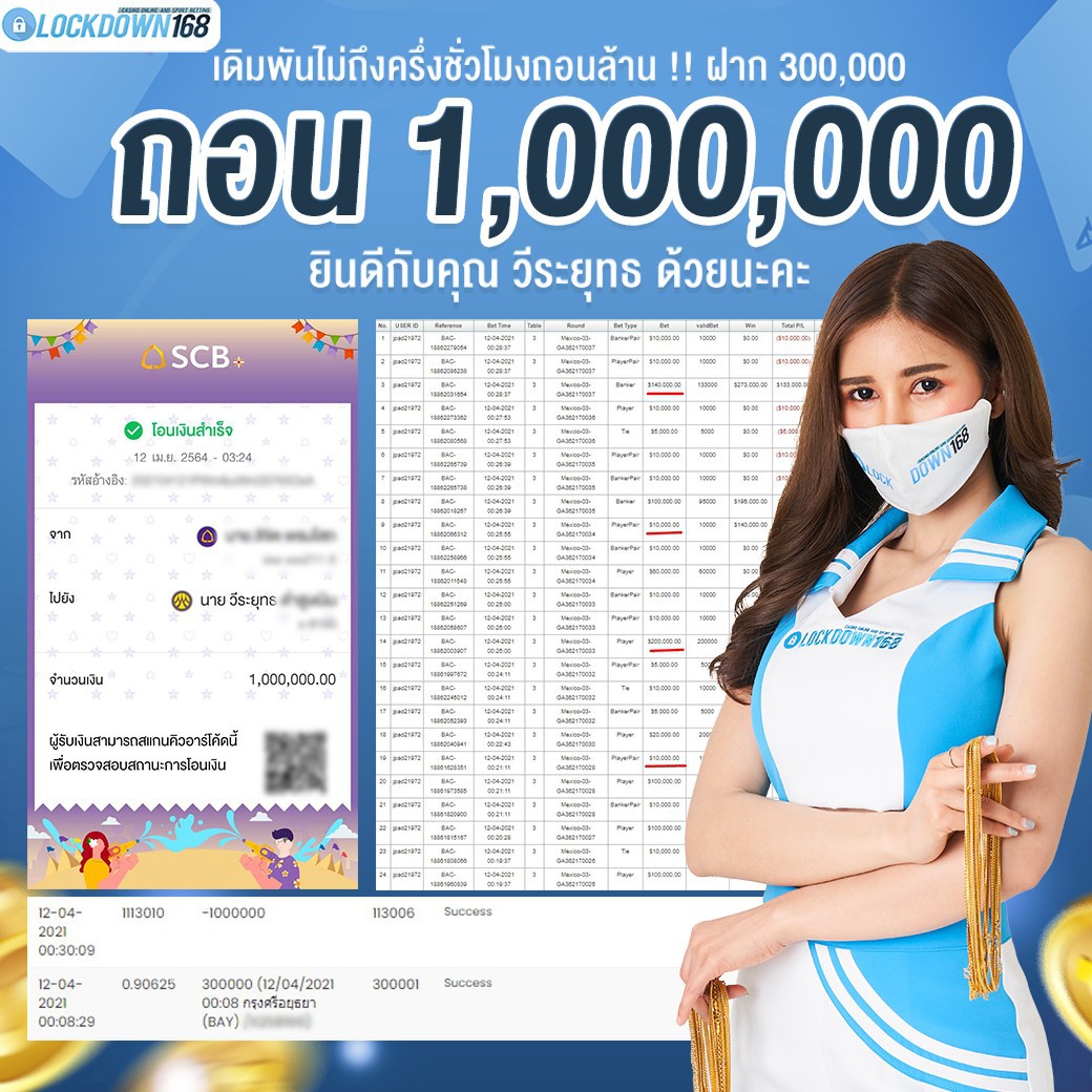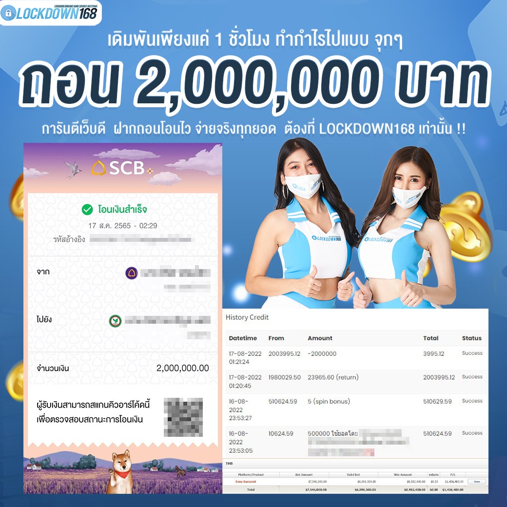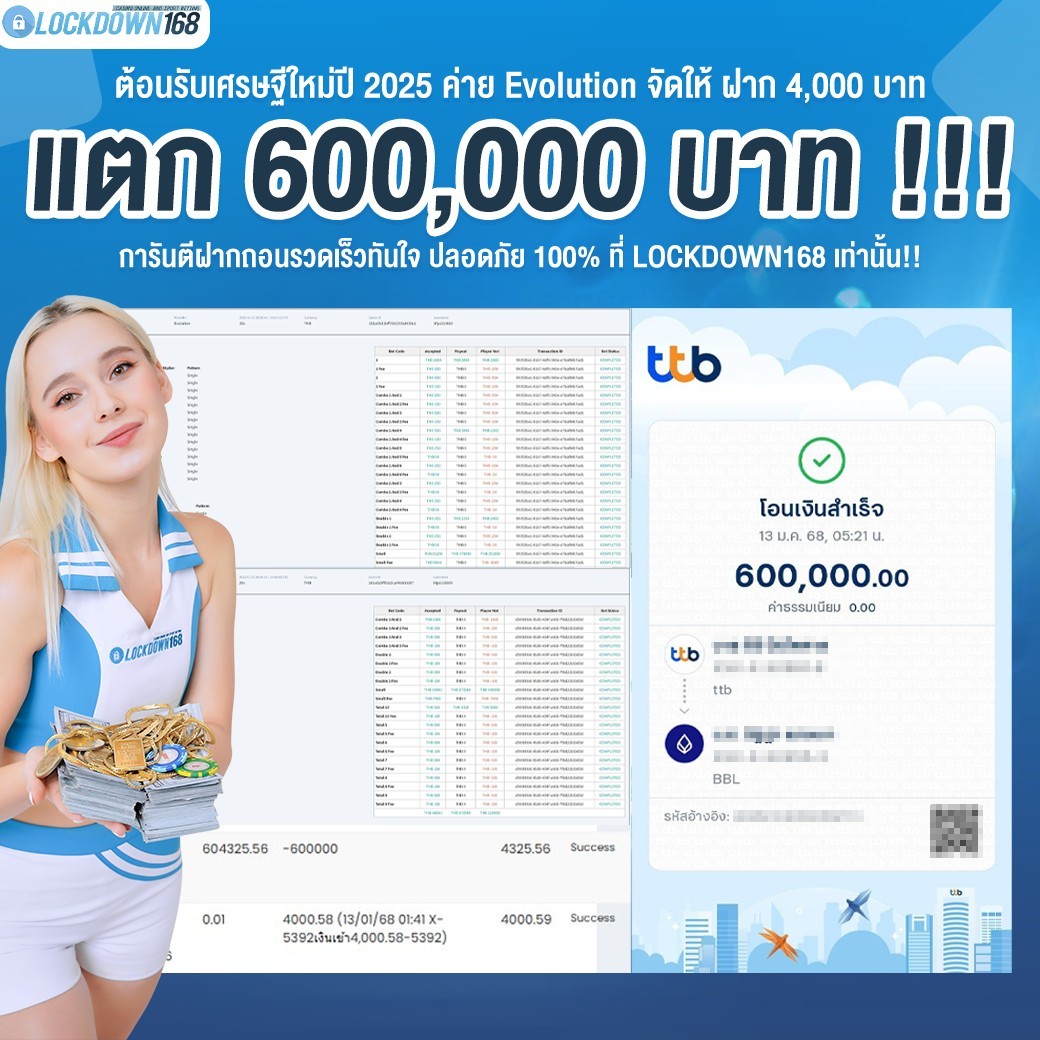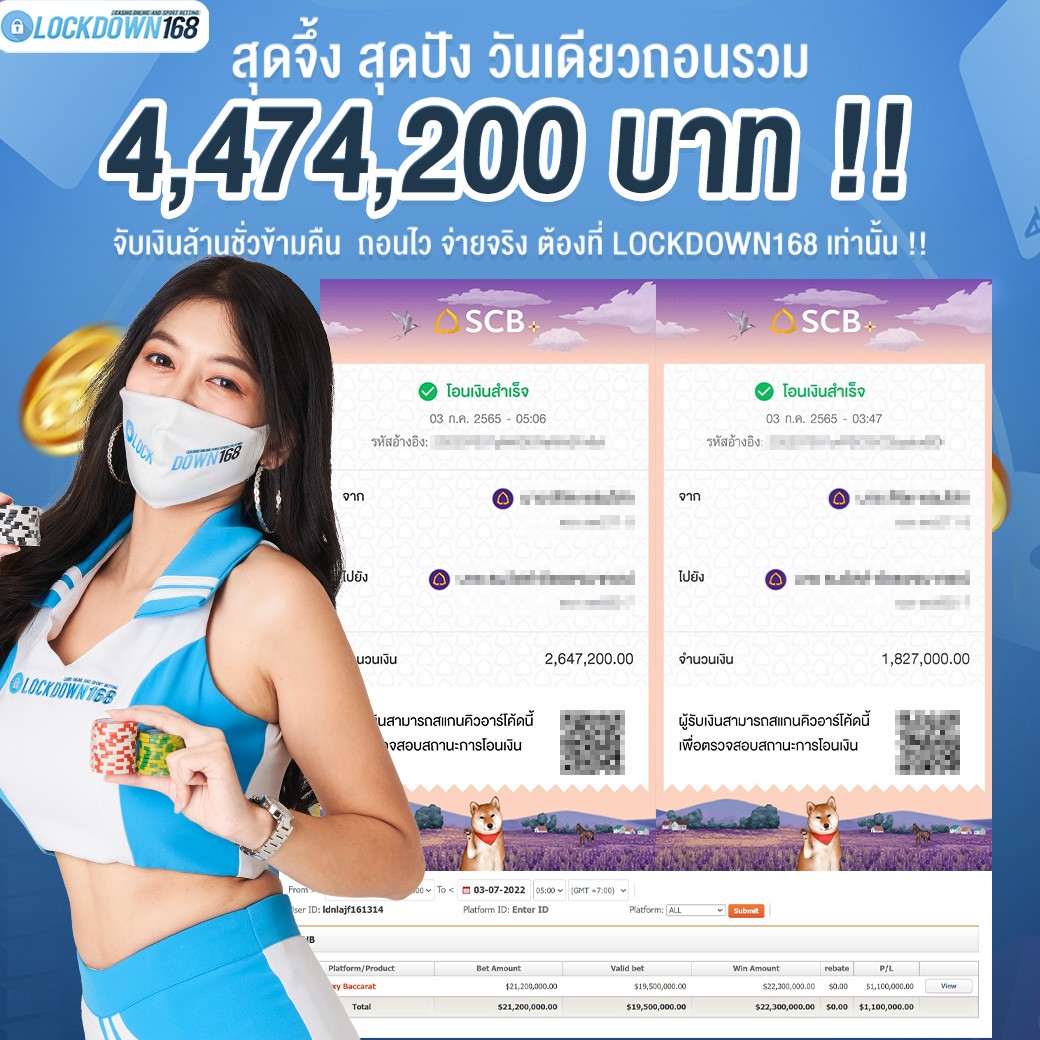 LOCKDOWN168.COM คาสิโนออนไลน์น้องใหม่ที่มาแรงที่สุดในตอนนี้ ด้วยระบบฝาก-ถอนอัตโนมัติ ที่ใช้เทคโนโลยีการจับยอดแบบใหม่ จับยอดฝากได้ภายใน 10 วินาที สามารถเล่นได้ทันทีหลังทำการโอนเงิน และระบบถอนเงินที่สามารถถอนเงินที่หน้าเว็ปได้ด้วยตัวท่านเอง โดยไม่ต้องแจ้งแอดมินและยอดเงินจะเข้าหลังจากทำการถอนภายใน 5 นาที เว็ปของเราคำนึงถึงความสะดวกสบายของลูกค้าเป็นหลัก หากลูกค้าพบปัญหาใดๆก็จะมีเจ้าหน้าที่แอดมินค่อยดูแลอำนวยความสะดวกให้คุณลูกค้าตลอด 24 ชั่วโมง