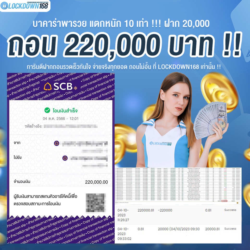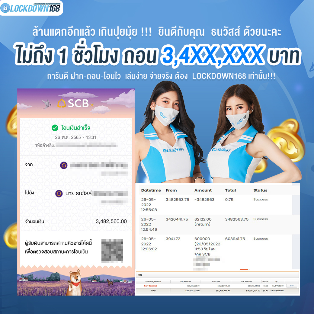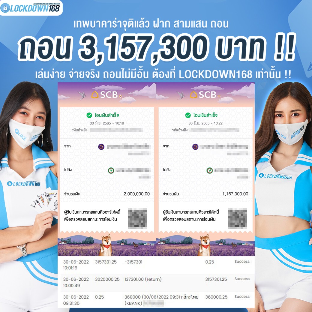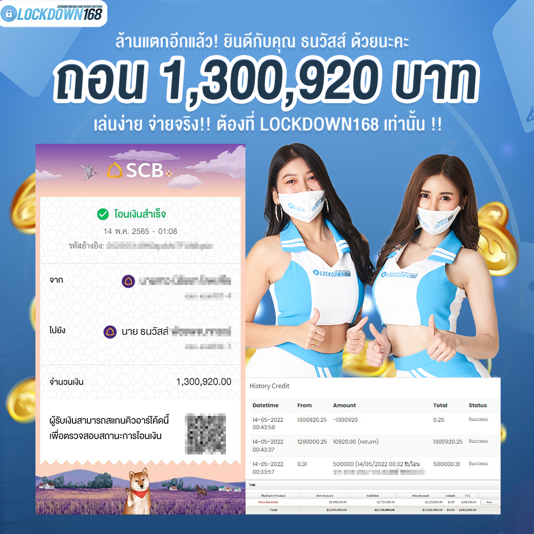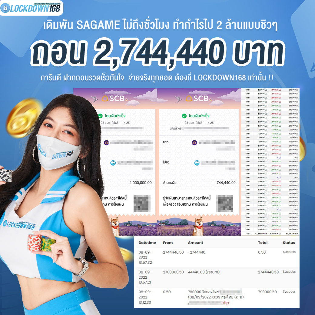 LOCKDOWN168.COM คาสิโนออนไลน์น้องใหม่ที่มาแรงที่สุดในตอนนี้ ด้วยระบบฝาก-ถอนอัตโนมัติ ที่ใช้เทคโนโลยีการจับยอดแบบใหม่ จับยอดฝากได้ภายใน 10 วินาที สามารถเล่นได้ทันทีหลังทำการโอนเงิน และระบบถอนเงินที่สามารถถอนเงินที่หน้าเว็ปได้ด้วยตัวท่านเอง โดยไม่ต้องแจ้งแอดมินและยอดเงินจะเข้าหลังจากทำการถอนภายใน 5 นาที เว็ปของเราคำนึงถึงความสะดวกสบายของลูกค้าเป็นหลัก หากลูกค้าพบปัญหาใดๆก็จะมีเจ้าหน้าที่แอดมินค่อยดูแลอำนวยความสะดวกให้คุณลูกค้าตลอด 24 ชั่วโมง