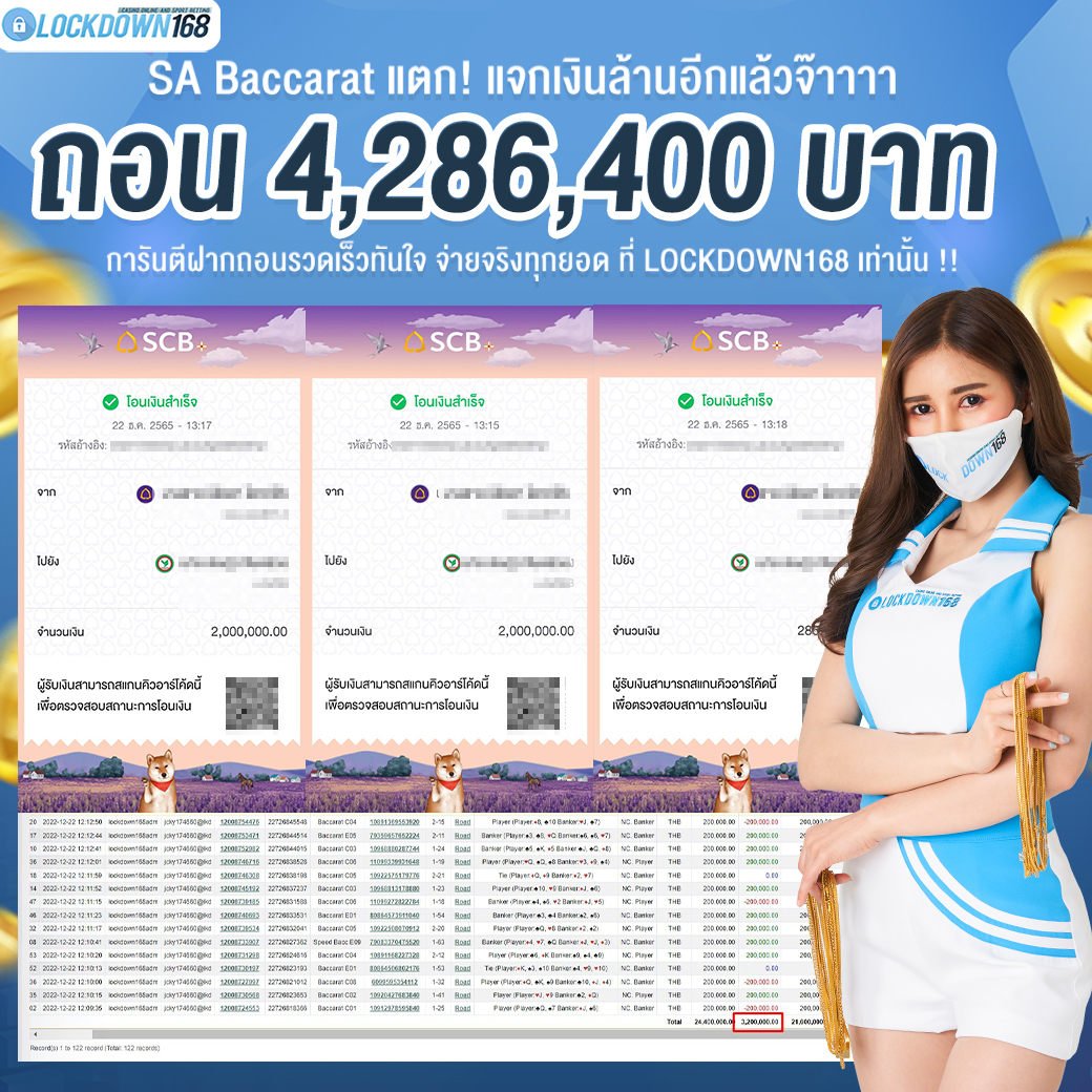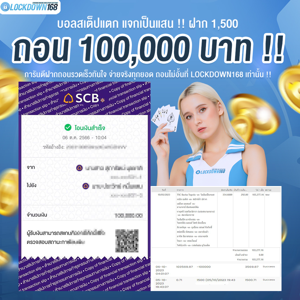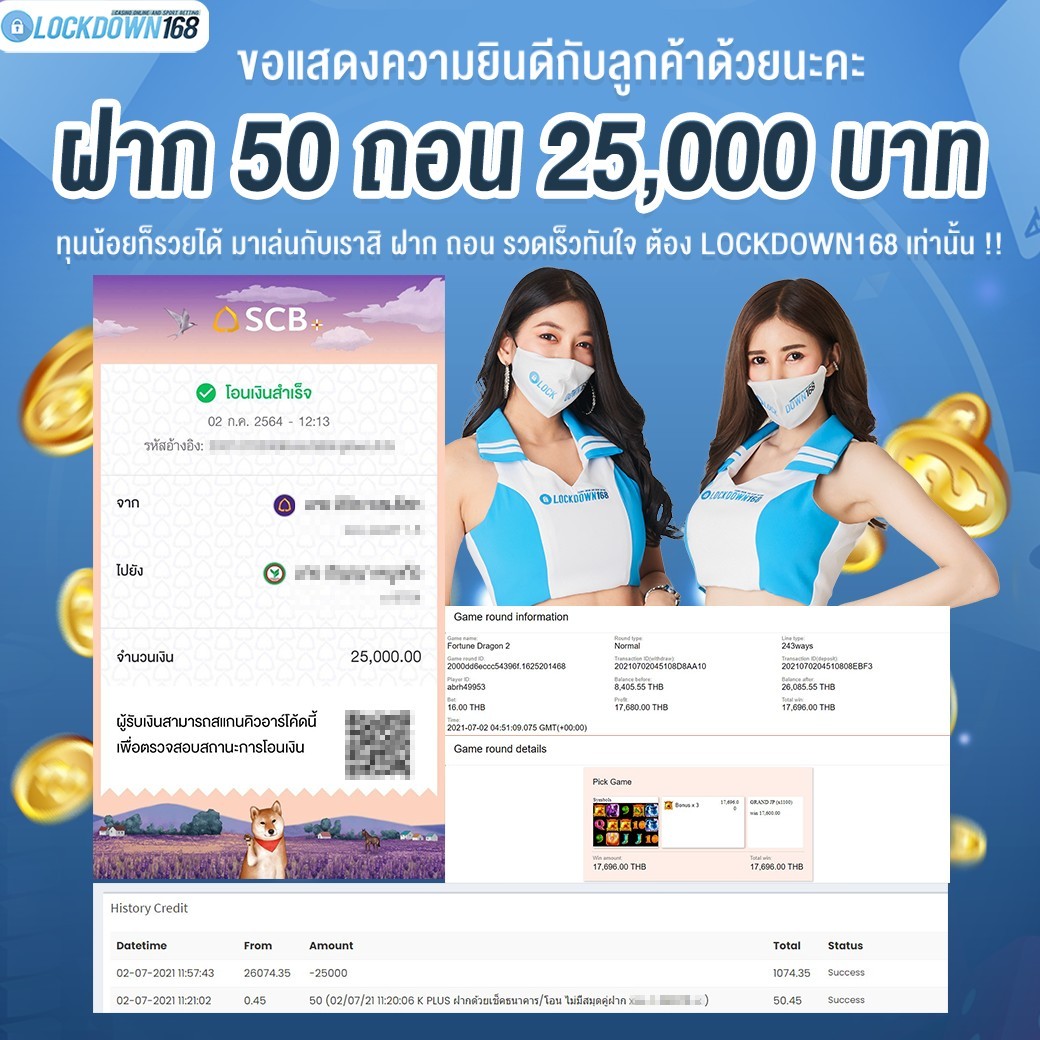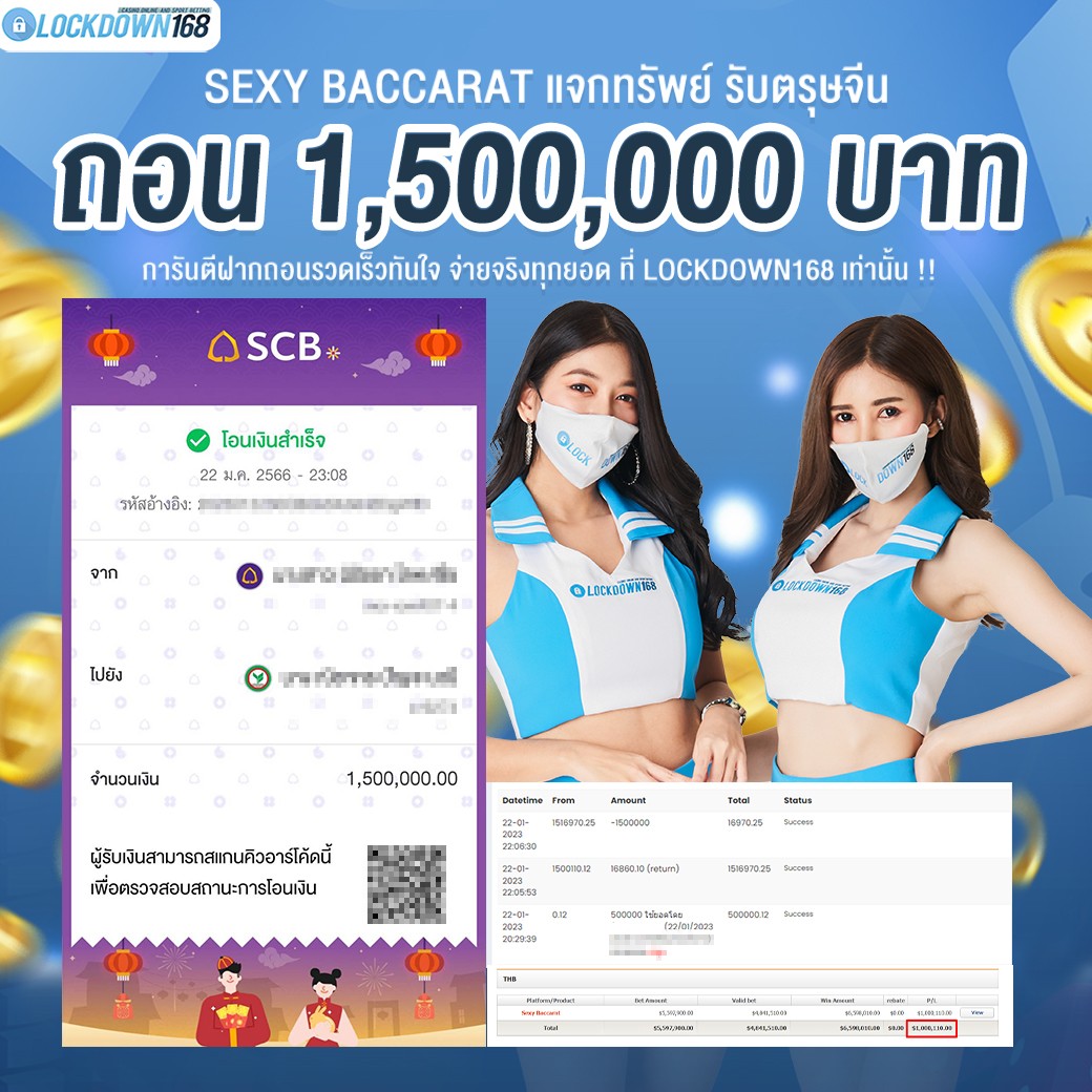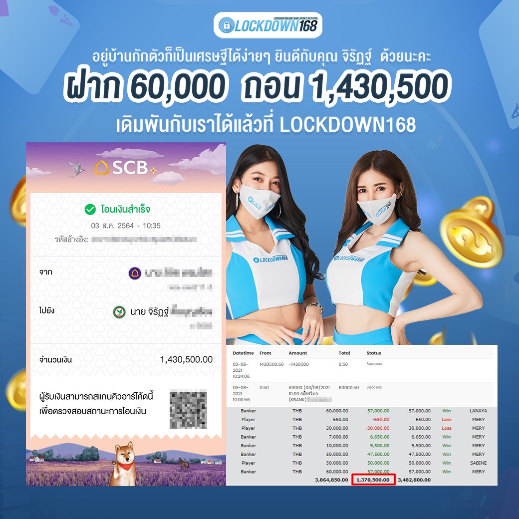 LOCKDOWN168.COM คาสิโนออนไลน์น้องใหม่ที่มาแรงที่สุดในตอนนี้ ด้วยระบบฝาก-ถอนอัตโนมัติ ที่ใช้เทคโนโลยีการจับยอดแบบใหม่ จับยอดฝากได้ภายใน 10 วินาที สามารถเล่นได้ทันทีหลังทำการโอนเงิน และระบบถอนเงินที่สามารถถอนเงินที่หน้าเว็ปได้ด้วยตัวท่านเอง โดยไม่ต้องแจ้งแอดมินและยอดเงินจะเข้าหลังจากทำการถอนภายใน 5 นาที เว็ปของเราคำนึงถึงความสะดวกสบายของลูกค้าเป็นหลัก หากลูกค้าพบปัญหาใดๆก็จะมีเจ้าหน้าที่แอดมินค่อยดูแลอำนวยความสะดวกให้คุณลูกค้าตลอด 24 ชั่วโมง