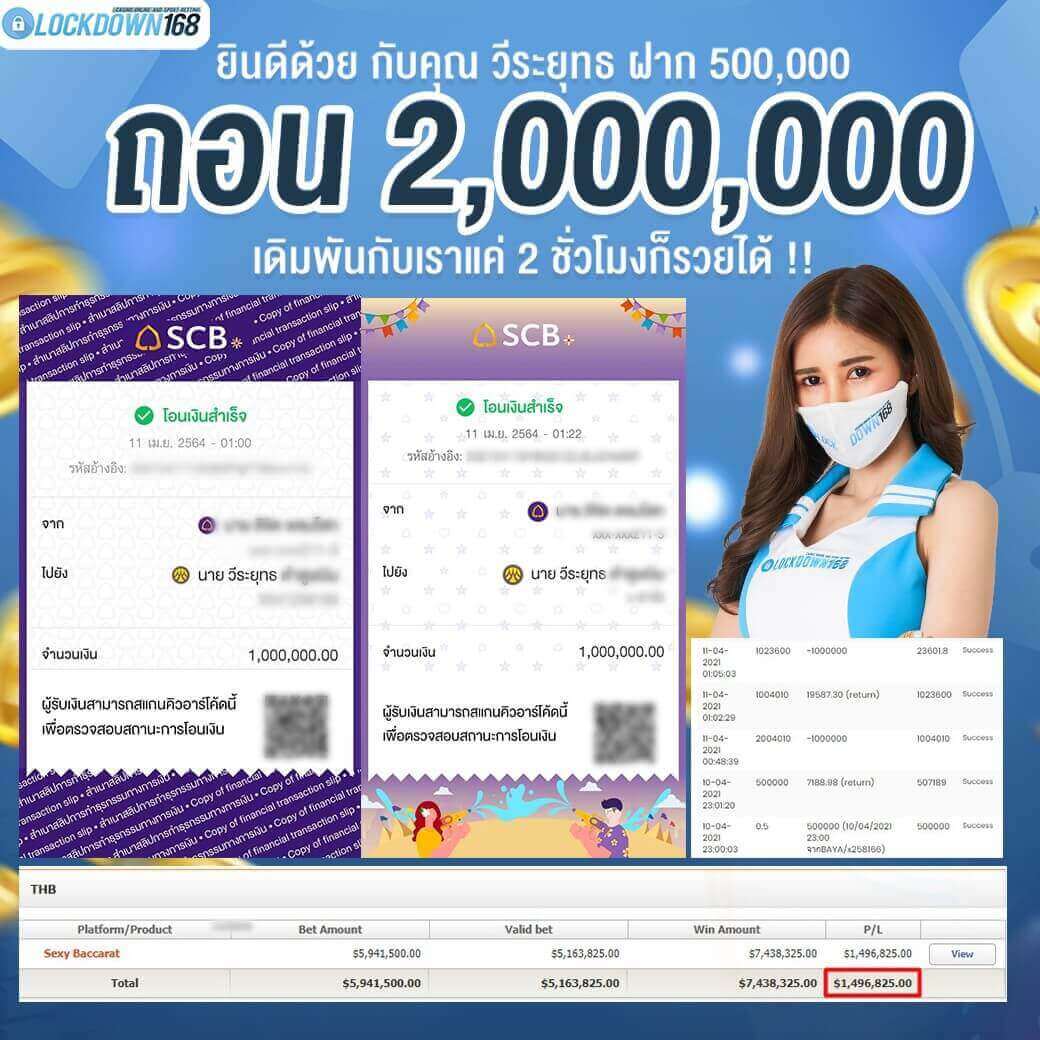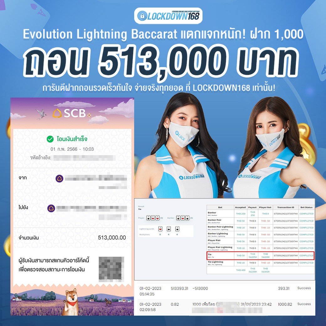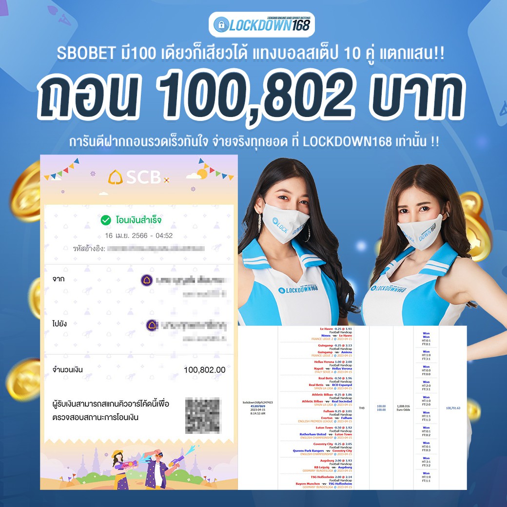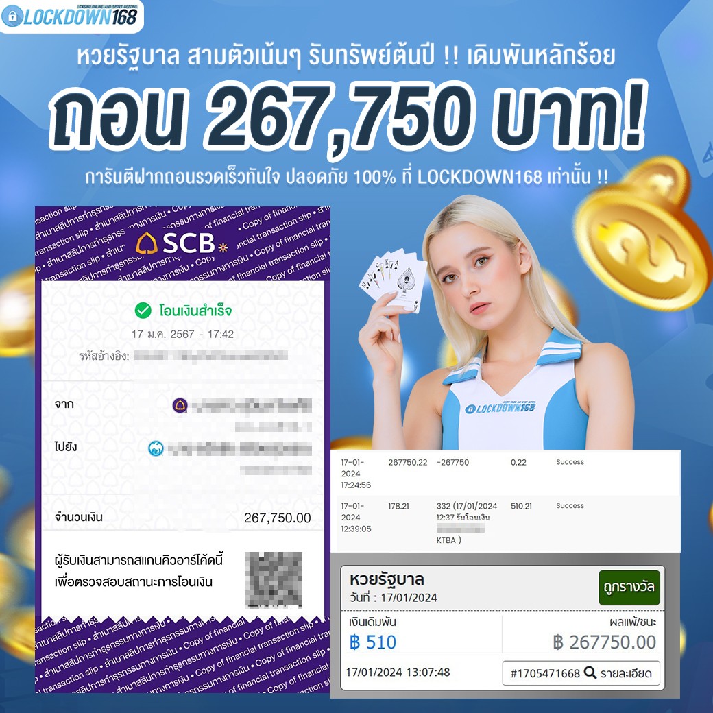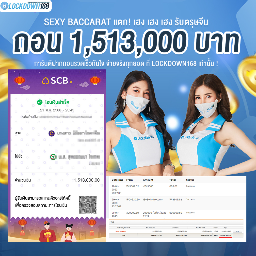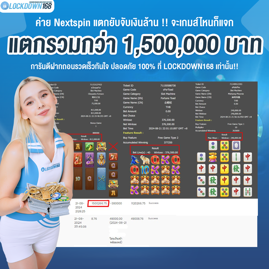 LOCKDOWN168.COM คาสิโนออนไลน์น้องใหม่ที่มาแรงที่สุดในตอนนี้ ด้วยระบบฝาก-ถอนอัตโนมัติ ที่ใช้เทคโนโลยีการจับยอดแบบใหม่ จับยอดฝากได้ภายใน 10 วินาที สามารถเล่นได้ทันทีหลังทำการโอนเงิน และระบบถอนเงินที่สามารถถอนเงินที่หน้าเว็ปได้ด้วยตัวท่านเอง โดยไม่ต้องแจ้งแอดมินและยอดเงินจะเข้าหลังจากทำการถอนภายใน 5 นาที เว็ปของเราคำนึงถึงความสะดวกสบายของลูกค้าเป็นหลัก หากลูกค้าพบปัญหาใดๆก็จะมีเจ้าหน้าที่แอดมินค่อยดูแลอำนวยความสะดวกให้คุณลูกค้าตลอด 24 ชั่วโมง