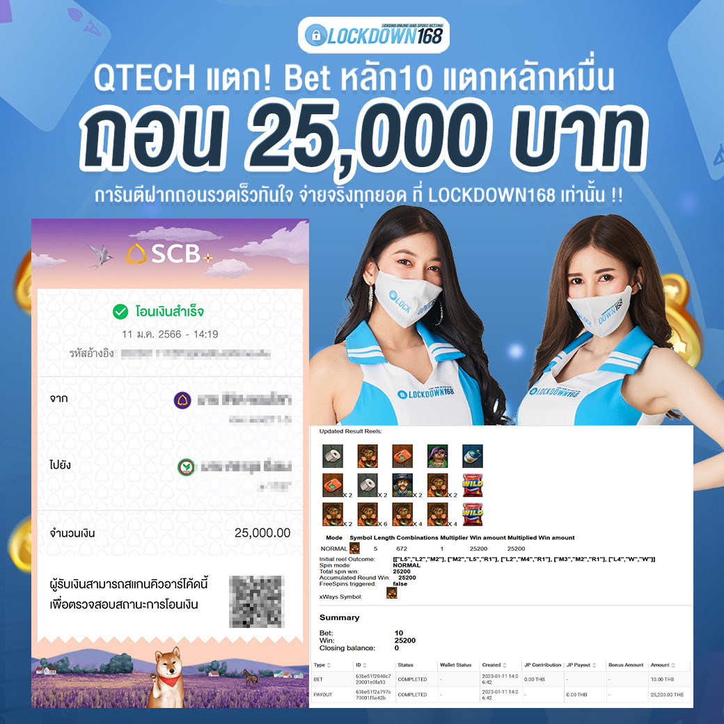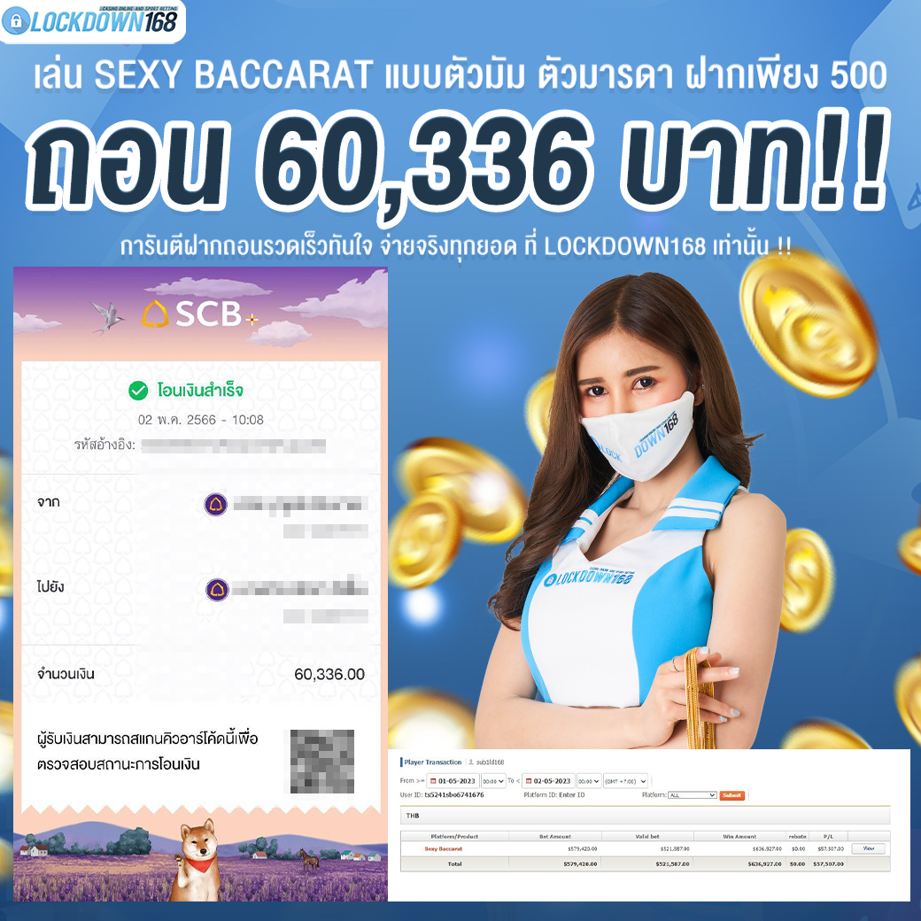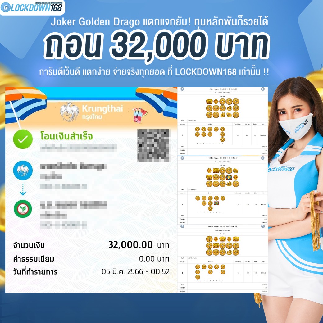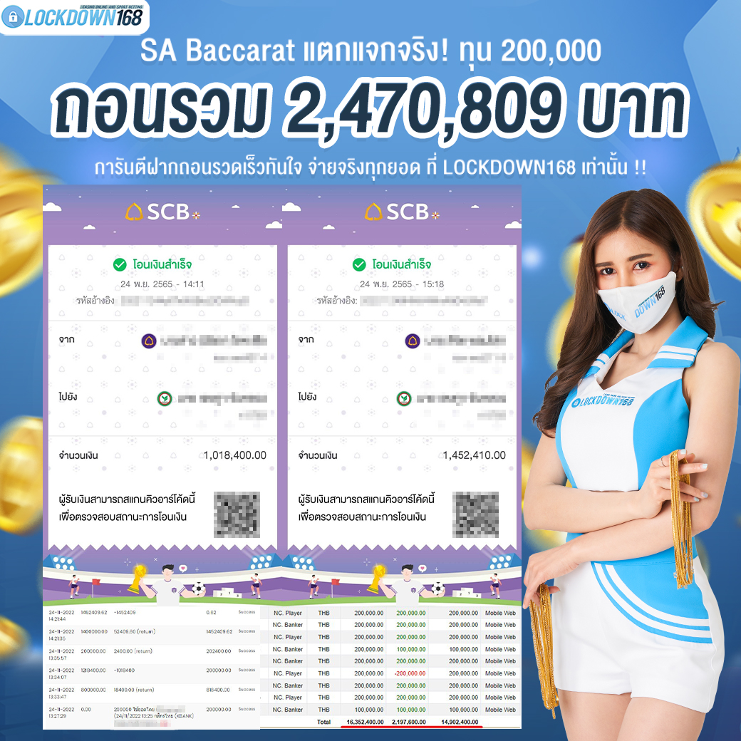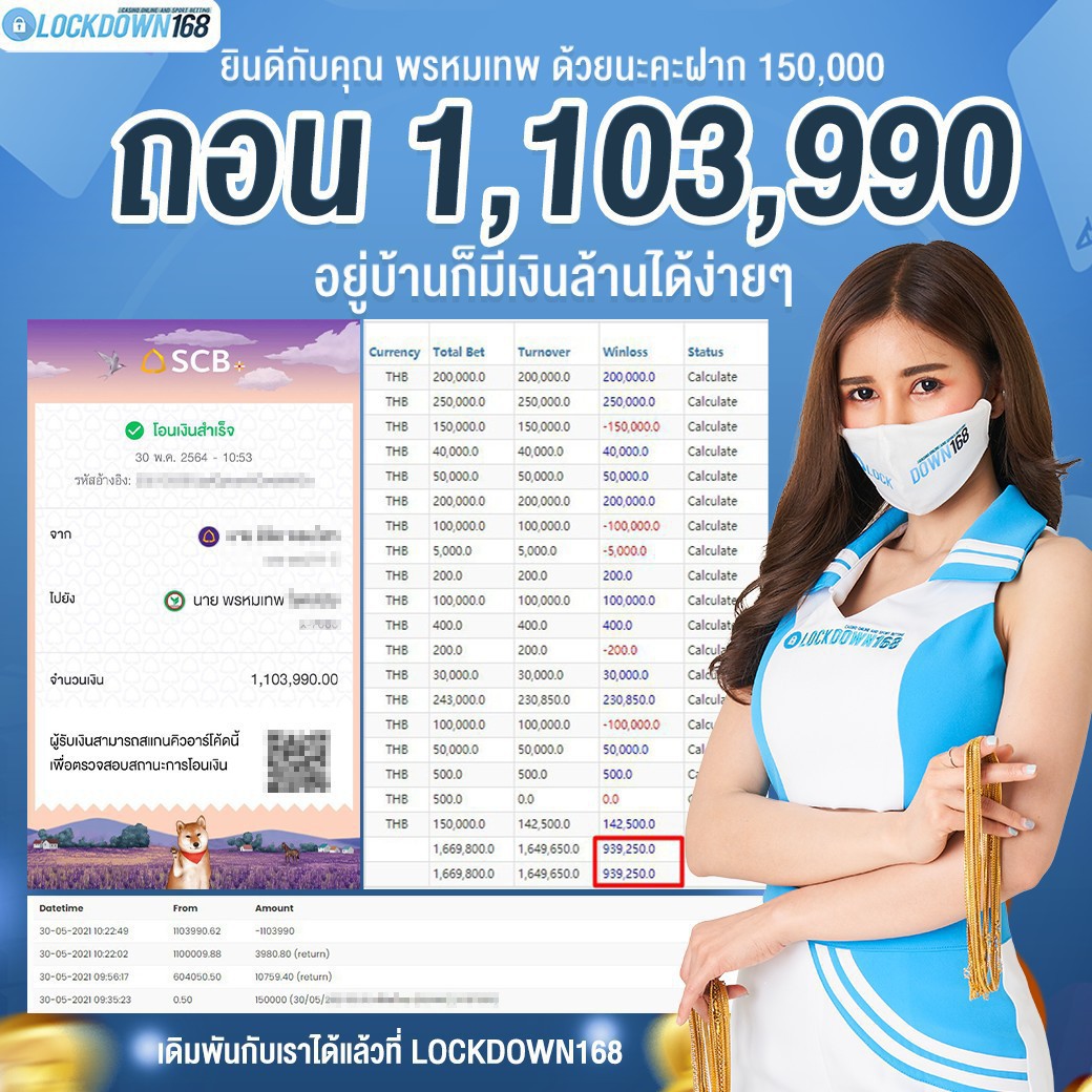 LOCKDOWN168.COM คาสิโนออนไลน์น้องใหม่ที่มาแรงที่สุดในตอนนี้ ด้วยระบบฝาก-ถอนอัตโนมัติ ที่ใช้เทคโนโลยีการจับยอดแบบใหม่ จับยอดฝากได้ภายใน 10 วินาที สามารถเล่นได้ทันทีหลังทำการโอนเงิน และระบบถอนเงินที่สามารถถอนเงินที่หน้าเว็ปได้ด้วยตัวท่านเอง โดยไม่ต้องแจ้งแอดมินและยอดเงินจะเข้าหลังจากทำการถอนภายใน 5 นาที เว็ปของเราคำนึงถึงความสะดวกสบายของลูกค้าเป็นหลัก หากลูกค้าพบปัญหาใดๆก็จะมีเจ้าหน้าที่แอดมินค่อยดูแลอำนวยความสะดวกให้คุณลูกค้าตลอด 24 ชั่วโมง